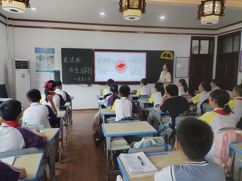 5月27日,武陵区紫菱小学开展民法典进校园活动,提升学生法治意识,提高学生法律观念。