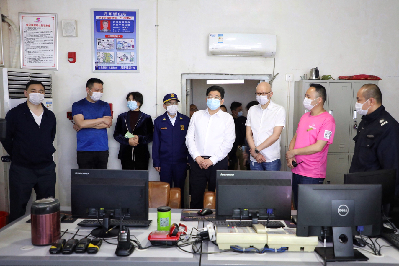 在穿紫河街道和丹阳街道金桥社区,康少中认真听取街道、社区在疫情防控方面的管控措施。