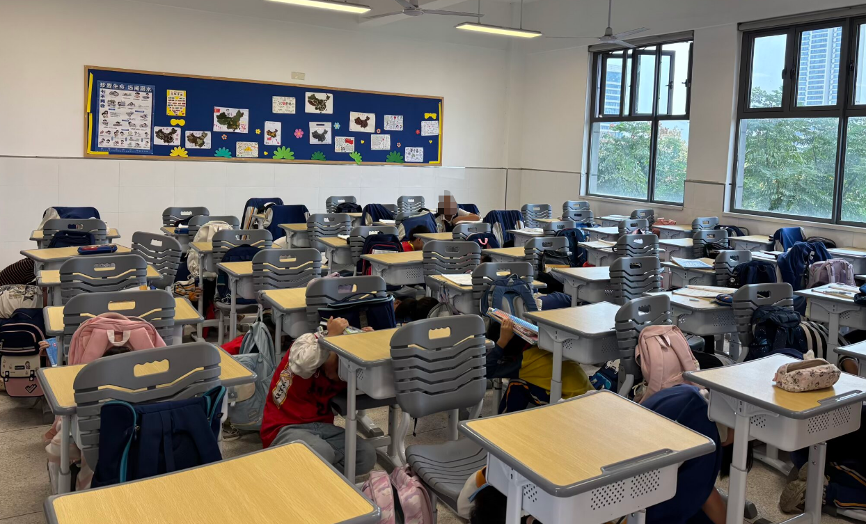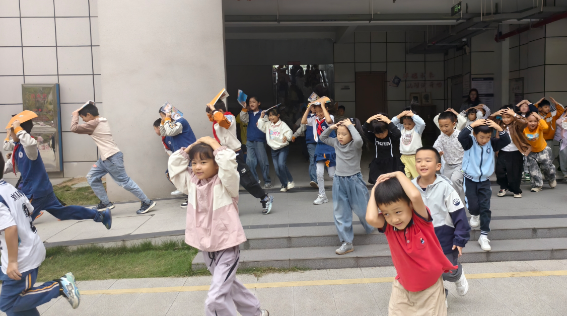 随着警报声响起,各班学生迅速抱头蜷身躲避在课桌下。随后在老师的指引下,全体学生弯腰护头,沿预定路线快速、有序地撤离到操场安全区域。整个过程紧张有序,用时仅3分钟,达到了预期效果。