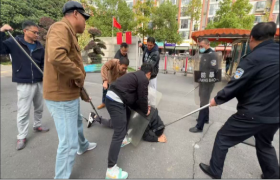 演练中,学校保安人员与“歹徒”周旋。听到呼叫的防暴小分队迅速到监控室拿上钢叉、防暴盾等器械阻止“歹徒”靠近教学楼,联络员第一时间到广播室发出警报。经过防暴小分队与安保人员的努力,最终将“歹徒”成功制服。