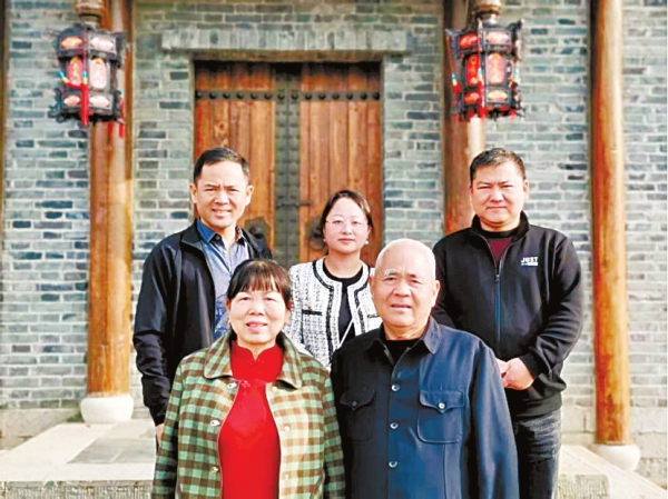 张陆(后排左一)与父母、弟弟、弟媳合影。资料照片