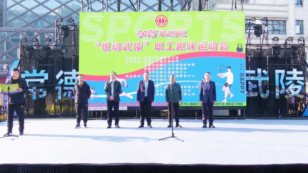 武陵区委副书记江毅宣布职工趣味运动会开幕,区人大常委会副主任、区总工会主席帅勇致辞。本次运动会不仅设置了传统的竞技项目,更融入了套圈、打卡等互动体验环节,增加活动的趣味性和参与感。