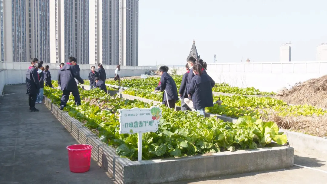 在武陵区第三小学的教学楼顶,一片生机勃勃的“空中农场”格外引人注目。这里不仅是校园里独特的风景线,更是孩子们劳动实践的“和乐农场”。一畦畦整齐的菜地里,记录着同学们播种的希望和收获的喜悦。
