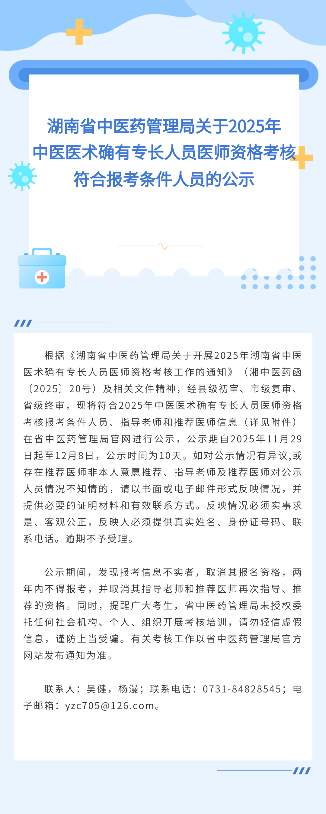 🔗:2025年中医医术确有专长人员医师资格考核符合报考条件人员相关信息公示