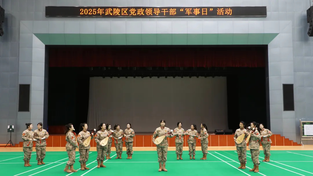 在“军事日”活动上,与会人员观摩了无人机科目教学,体验了轻武器模拟射击,观看了武陵女子民兵志愿宣讲队展演的节目《沅澧大地满春光》。