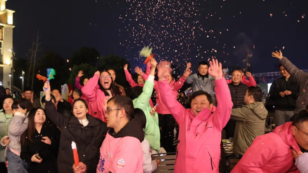市城区多家餐饮,门店也成了球迷聚集地。大家身着粉色球迷服装,响亮的口号与赛场同步,仪式感十足。比赛常规时间双方0比0战平,点球大战开始时,所有观众自发起身观战,前五轮双方战平,第六轮株洲队射失点球,随后常德队队员王奎峰一记精彩的“勺子点球”一锤定音,将比分锁定为5比4。此刻,“第二现场”瞬间沸腾,大家挥舞着手中加油棒,欢呼声此起彼伏,人们相拥跳跃,喜悦之情与屏幕内的赛场隔空相融。