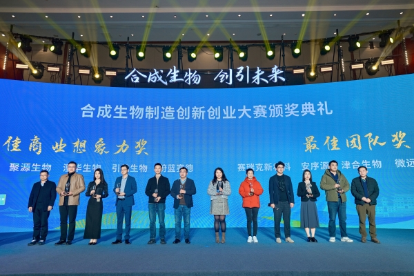 第一届“科创·柳叶湖”合成生物制造创新创业大赛最佳商业想象力奖和最佳团队奖颁奖。财鑫集团供图