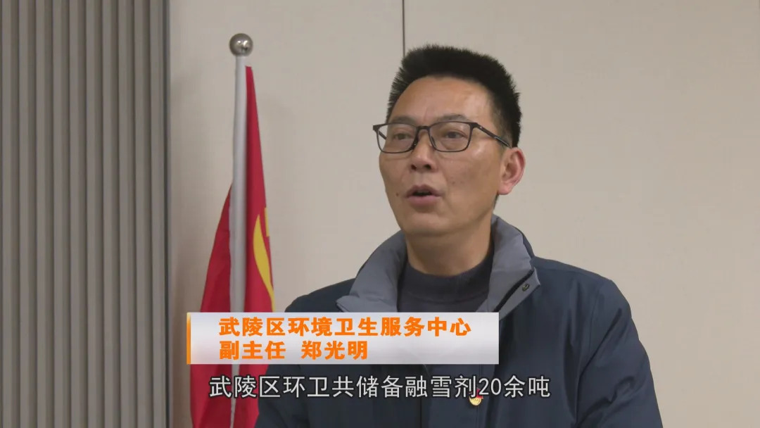 武陵区环卫共储备融雪剂20余吨、防滑麻袋2000余条、铲雪锹、手套若干,机械设备方面,目前准备了5台多功能大型铲雪车,预备租赁铲车23台,撒盐车10台。各管理所已建立24小时值班制度,做到以雪情为令,随下随清。同时中转站、公厕等环卫设施正常运转,69台垃圾清运车辆全部预备防滑链,确保城区生活垃圾日产日清。