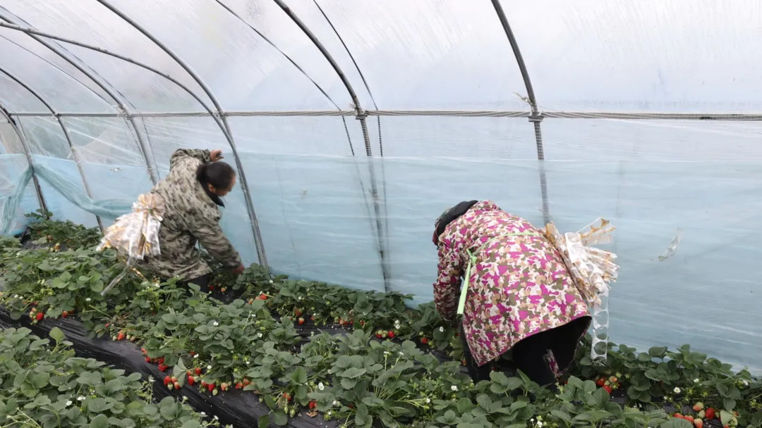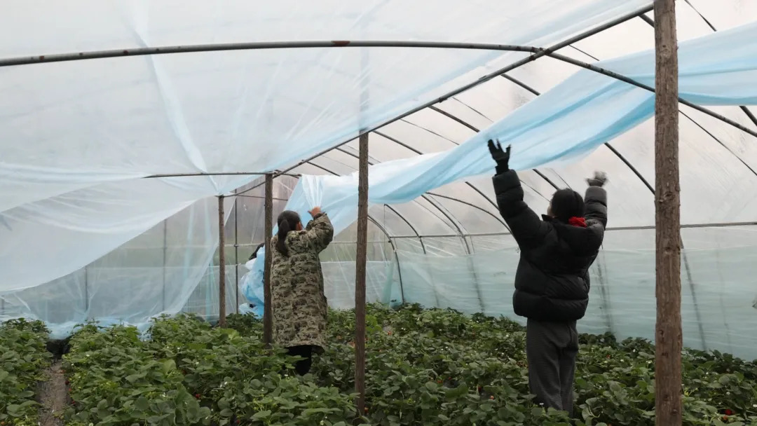 种植户介绍,当前正值草莓生长关键期,面对“断崖式”的降温,除了做好棚内的保温工作,还对大棚进行加固处理,在棚顶增加了两条钢管,相当于为大棚增加了两道梁,牢牢稳定住大棚,确保不被风雪天气压垮、压倒。