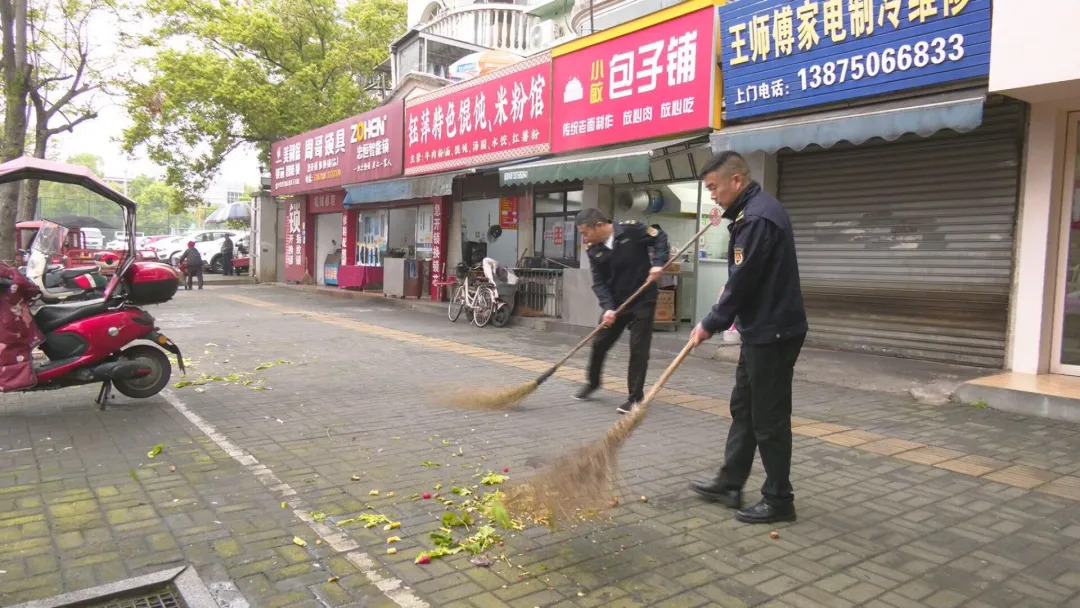 在芷兰农贸市场,即便天降小雨,区城管执法人员依旧坚守岗位,对市场周边占道经营行为开展文明劝导,及时清理路面垃圾,规范经营秩序。与此同时,芷兰街道芷荷社区组织社区干部、党员志愿者、网格员,深入老旧小区开展卫生清扫,重点清理垃圾、处置积水,从源头遏制病媒生物滋生。