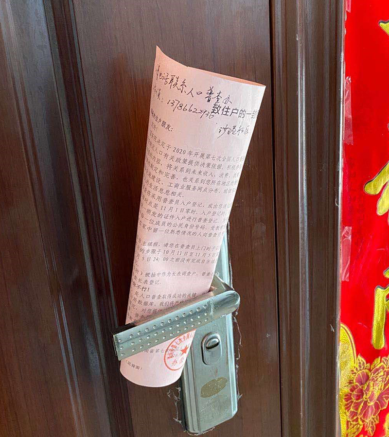 对于开放式小区、无物业管理的小区,为打消居民的疑虑,由居民熟悉的小组长带队,全面入户,面对面地宣传交流,并宣传普查工作对个人信息保护的安全性。面对人口普查摸底“人难逢”的问题,工作人员不厌其烦的多次上门无果后,在门口张贴温馨提示小纸条,留下联系方式和宣传小口号,鼓励居民主动联系。