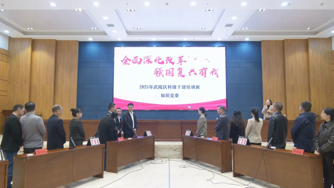 30日上午,2025年武陵区科级干部培训班在武陵区全民健身中心举办知识竞赛。此次知识竞赛分为六个小组,设置必答题、抢答题、风险题三个环节,将党的二十届三中全会的主要内容贯穿到比赛中。竞赛中,选手们集中精力听题,认真细致答题,经过激烈角逐,最终第三小组获得第一名。