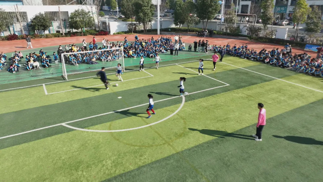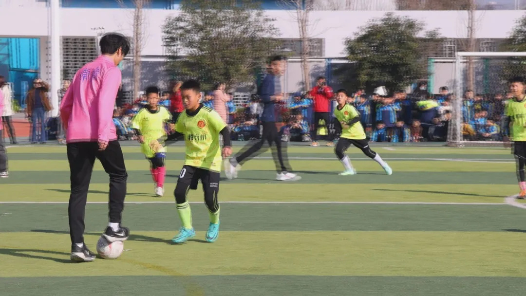 在武陵区第一小学,6名湘超联赛常德队队员化身“帮帮团”,分别加入六支小学生队伍,进行了一场趣味友谊赛。小球员们跑动积极、配合默契,在专业队员的带领下尽情享受足球乐趣。现场加油声、欢笑声响彻绿茵球场。