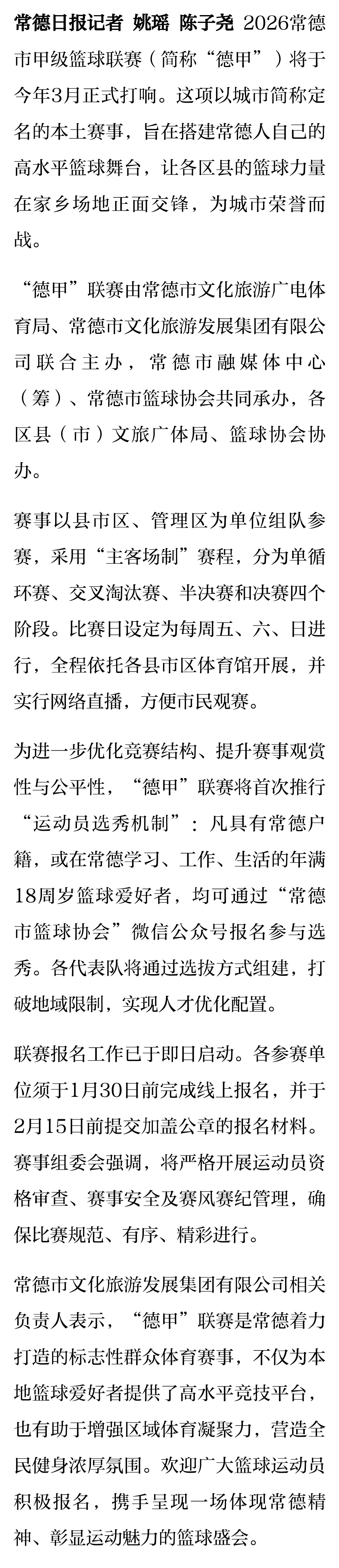 常德市“德甲”篮球联赛3月启幕