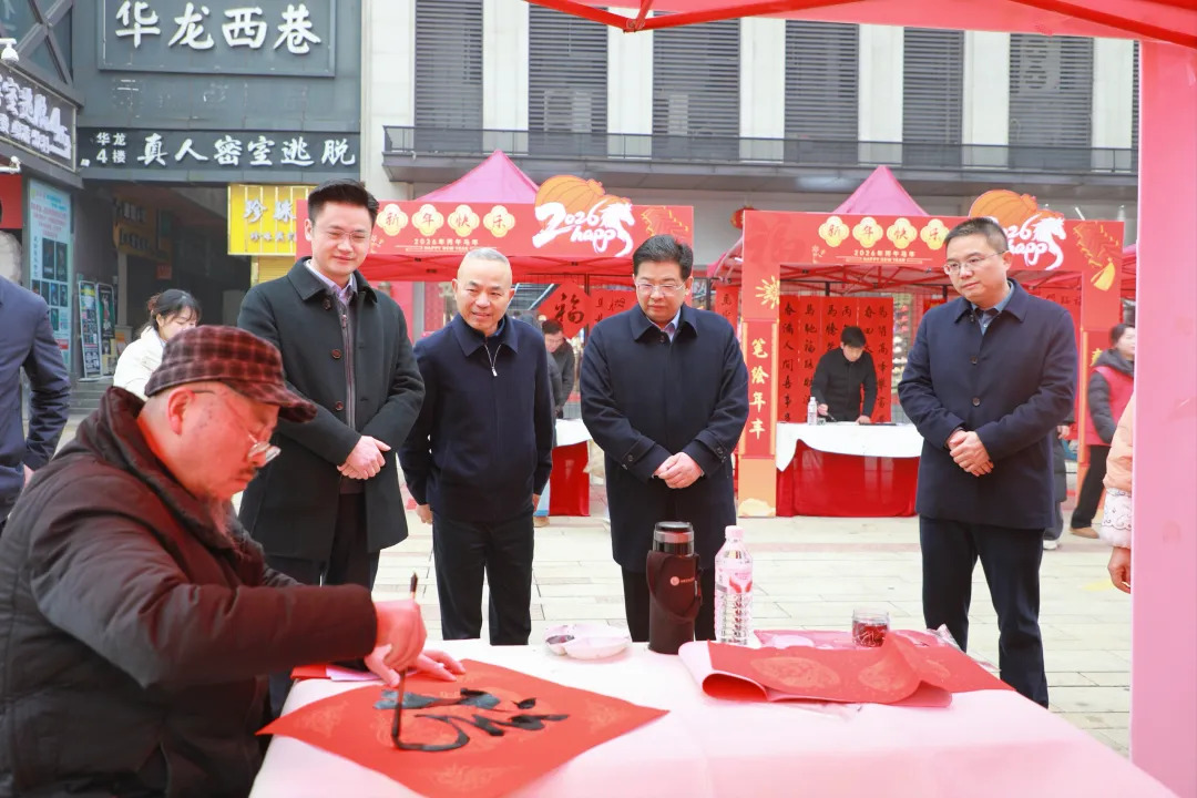 28日,2026年武陵区总工会“两节”送温暖启动仪式暨“送万福、进万家”书法公益活动在武陵阁步行城举行,区委书记康少中,区委副书记、区长寻健出席,区委副书记、统战部部长江毅致辞。
