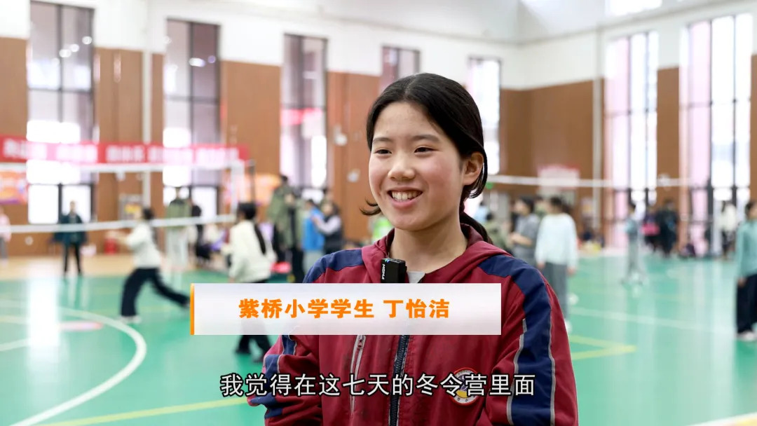 我觉得在这七天的冬令营里面,训练量比学校大很多,也很充实,我以前一传不是很好,现在一传接得很稳了,跟队友的配合也提升了很多,(对)以后的比赛可能有很大的提升。