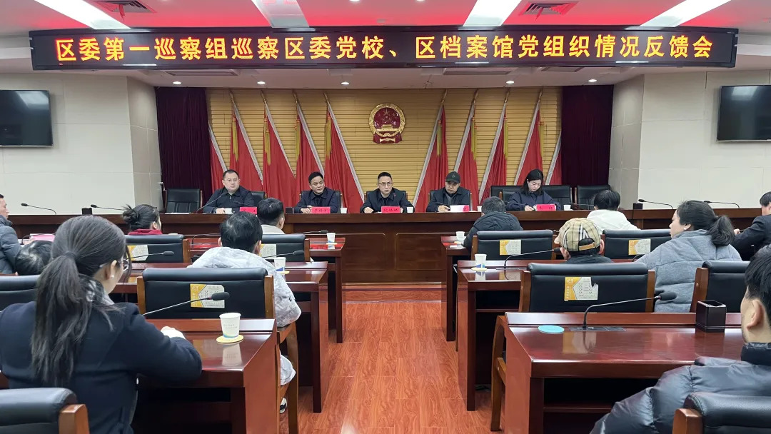 在区委党校、区档案馆,区委第一巡察组组长涂冰黎传达了区委书记专题会议精神,反馈了巡察意见并提出整改建议。