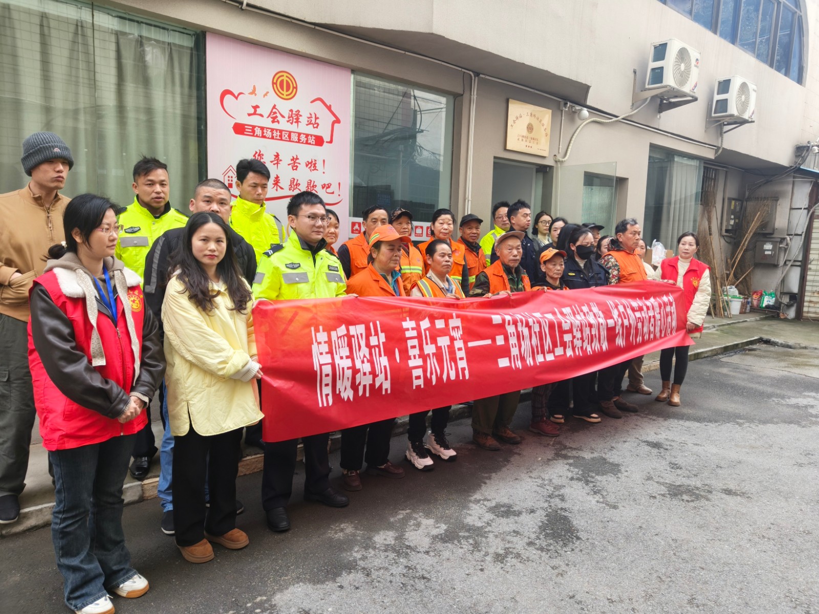 3月3日,白马湖街道三角场社区工会驿站开展元宵节慰问活动,为四十余名户外劳动者送上节日关怀,让坚守一线的工作人员感受团圆温情。