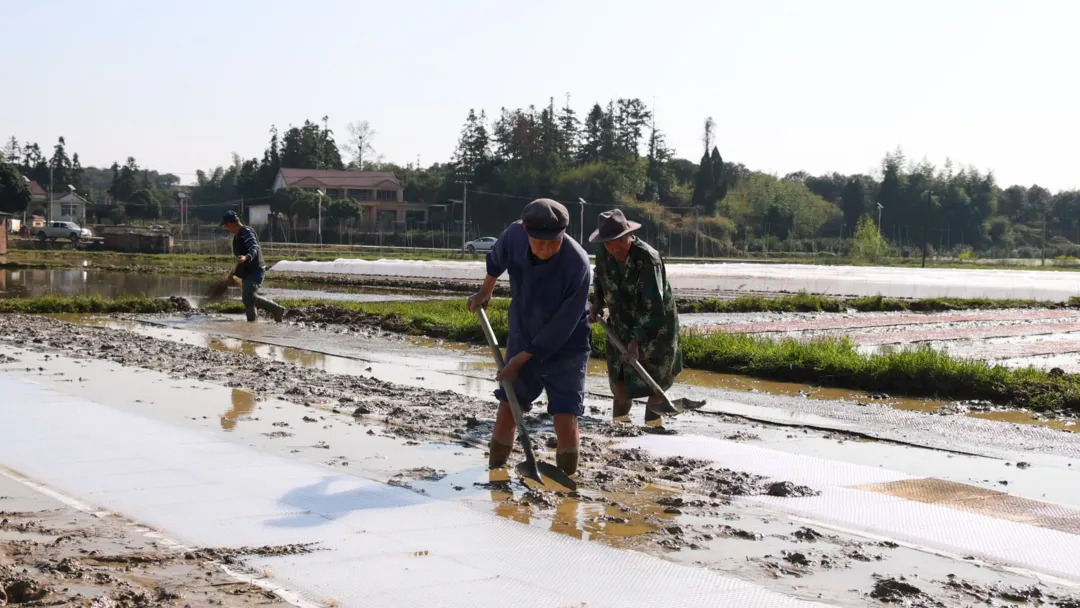 在武陵区石门桥镇狮子山村的一处育秧田里,长丰水稻种植合作社正组织工人开展育秧。工人们分工协作,将整理好的秧田有序起垄,摆上抛秧盘,并将事先准备好的浸种均匀的洒在抛秧盘上,最后盖上薄膜,用泥土压实边缘,保证秧苗生长的湿度和温度,应对初春多变的天气。