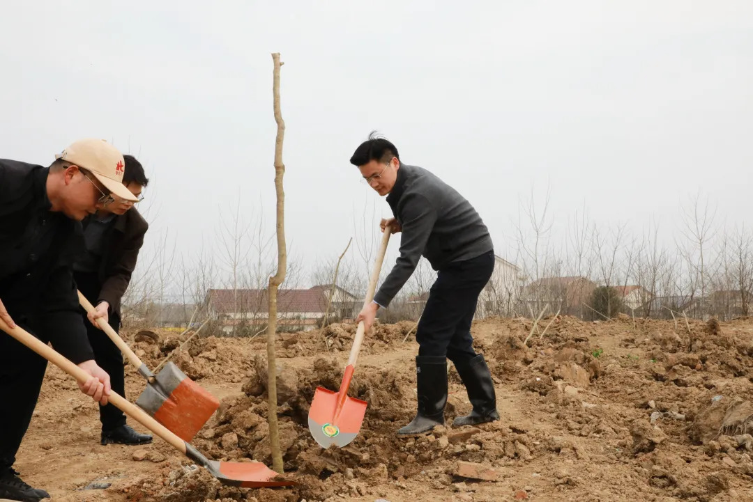 植树现场一派热火朝天的繁忙景象。大家三五成组,分工协作,经过一上午的辛勤劳动,300株兼具生态效益与景观效果的无患子树苗在此“安家落户”,为初春的乡村大地增添了一道靓丽的风景线。