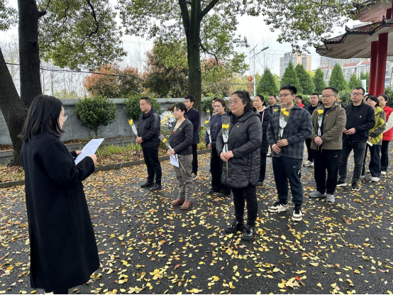 默哀结束后,工作人员以刘泽远烈士的英雄事迹为切入点,开展沉浸式爱国主义教育宣讲,详细讲述了烈士不畏艰难险阻为民族解放事业献出宝贵生命的峥嵘历程。大家纷纷表示,要把爱国之情、强国之志、报国之行融入日常工作和生活,立足本职、奋勇争先,用实际行动告慰先烈、续写荣光,践行新时代爱国主义精神。随后,全体参与人员有序敬献鲜花、绕行瞻仰。