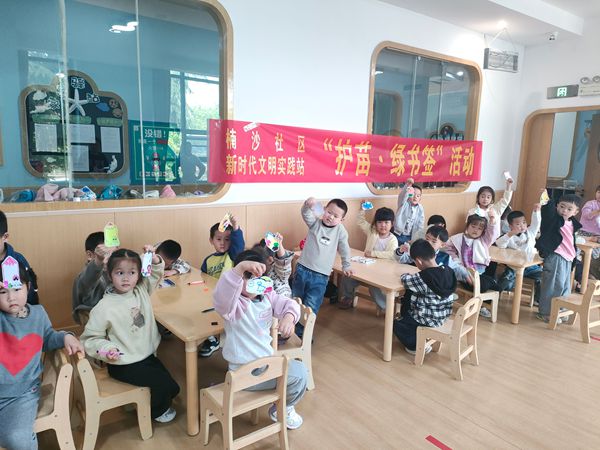 4月23日,永安街道楠沙社区新时代文明实践站联合辖区楠沙湾幼儿园开展“护苗·绿书签”主题活动。