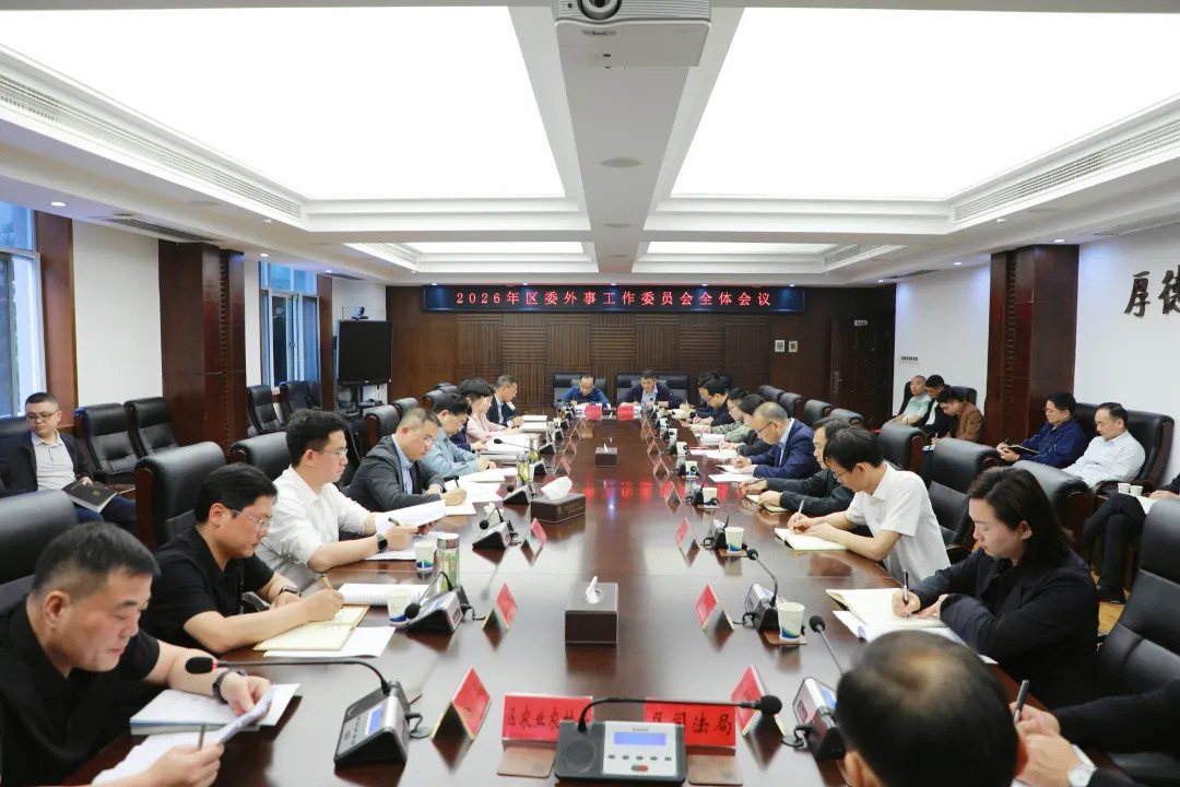 27日,区委书记康少中主持召开2026年区委外事工作委员会全体会议,深入学习贯彻习近平新时代中国特色社会主义思想和习近平外交思想,传达学习中央和省委、市委有关会议精神,听取全区外事工作有关情况,研究部署下阶段重点工作。区委副书记、区长寻健参加会议。